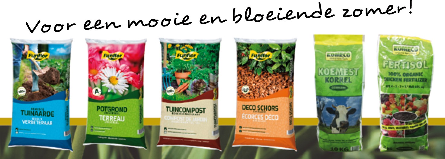 U kunt bemeste tuinaarde, potgrond, compost, boomschors, koemestkorrels en kippenmestkorrels bestellen.